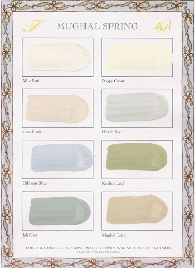 Mughal Spring ‘Mughal Spring’ was the first collection designed by Francesca and Aleta, who combined their passion for colour to create 8 shades capturing the fresh, spiritual essence of an exotic spring.